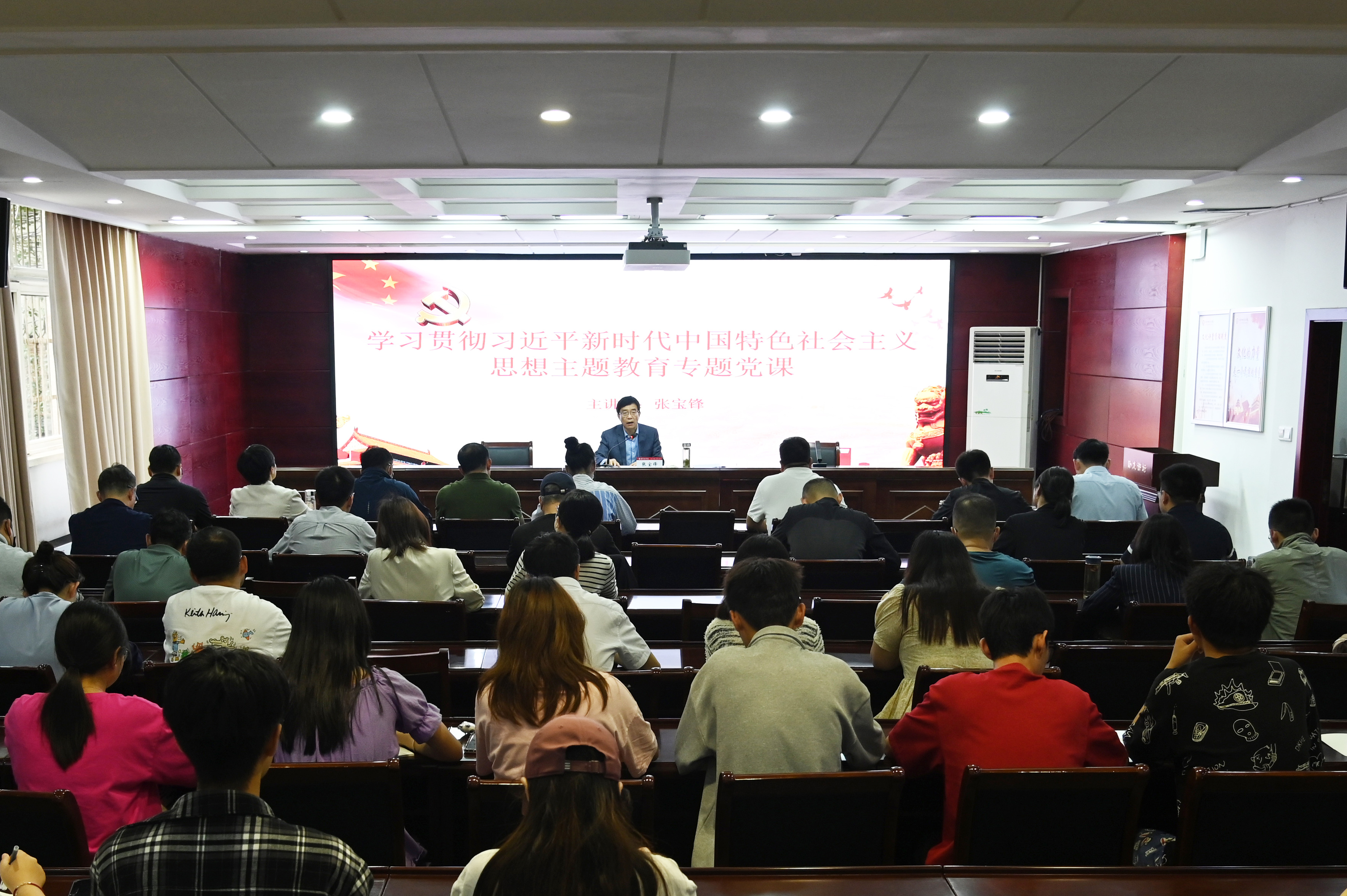 5月31日下午,校长张宝锋在办公大楼一楼东会议室作题为《深化高等教育内涵建设,助力实施科教兴国战略、人才强国战略和创新驱动发展战略》的习近平新时代中国特色社会主义思想主题教育专题党课。院长办公室、校友办、审计处、法学院、水资源与环境工程学院的党员干部和师生代表参加党课。专题党课由院长办公室主任冷枫主持。张宝锋从十八大以来我国高等教育事...