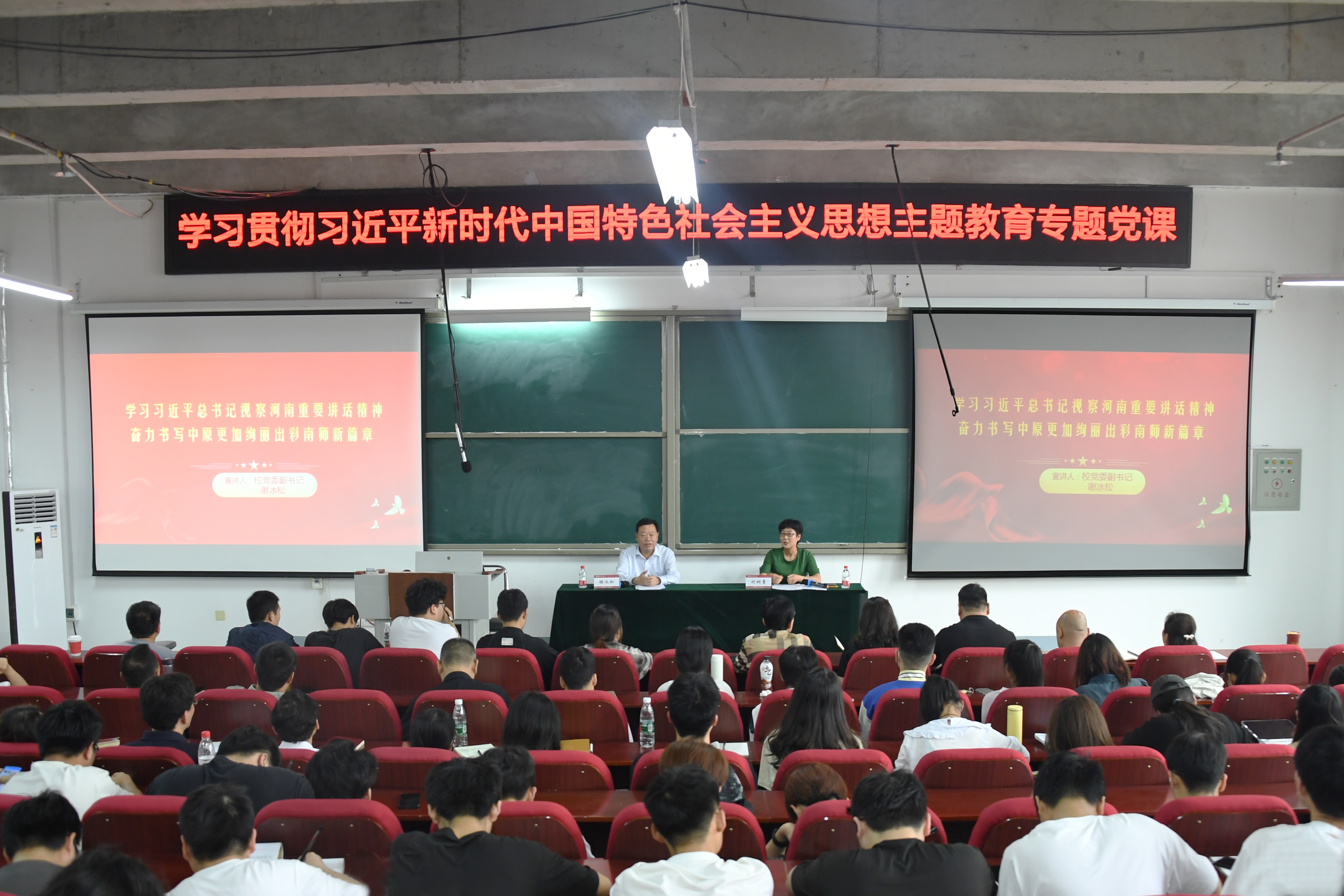 为深化开展学习贯彻习近平新时代中国特色社会主义思想主题教育,5月31日下午,校党委副书记谢冰松在创新创业学院4号楼4201教室,以《学习习近平总书记视察河南重要讲话精神 奋力书写中原更加绚丽出彩南师新篇章》为题,为党委宣传部、学生处、校团委、就业指导与服务中心、创新创业学院、心理健康教育与咨询中心和历史学院、机电工程学院等单位师生党员...