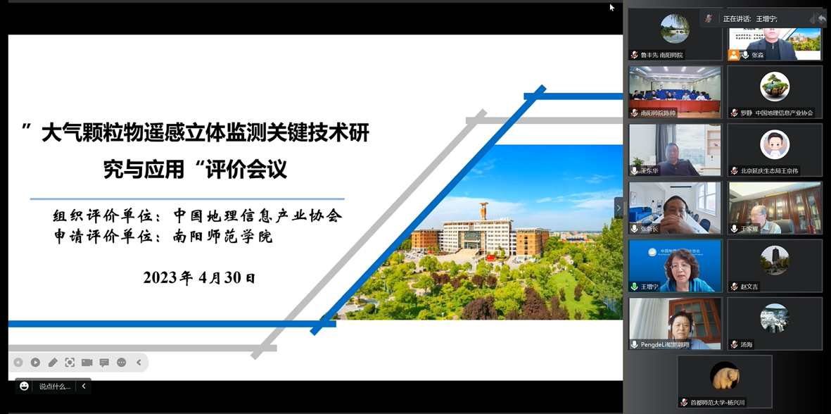本网讯(通讯员 鲁丰先 张淼)4月30日,中国地理信息产业协会组织专家对科研项目 “大气颗粒物遥感立体监测关键技术研究与应用”成果进行线上评价。永利官网作为第一完成单位在逸夫楼S605教室作线上答辩。中国工程院院士王家耀任评价委员会主任,自然资源部中国地质调查局副局长李朋德研究员、中国地理信息产业协会教授级高工汤海、国际欧亚科学院院士张新长、国家基础地理信息中心教授级高工王东华任评价组委员。首都师范大学、北京市延庆区环境保护监测站作为项目协同单位参加,联合项目组全体成员线上参会。永利官网副校长周旗出席。中国地理信息产业协会副会长兼秘书长王增宁主持评价会。