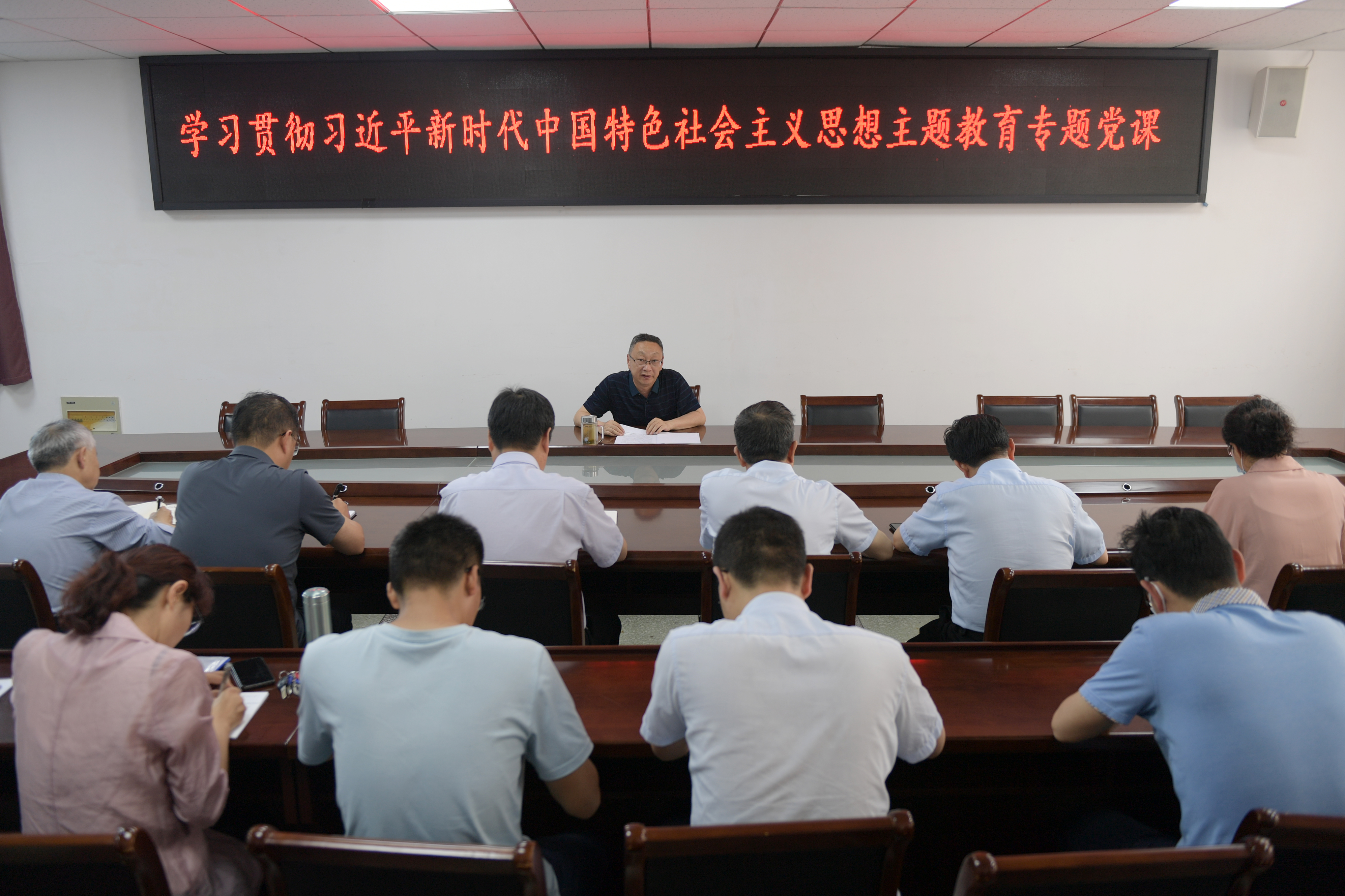 本网讯(马伟/文 曹艺鹏/图)为深入学习贯彻习近平新时代中国特色社会主义思想主题教育,5月18日下午,副校长周旗在办公大楼一楼西会议室为教务处、发展规划处、国有资产与设备管理处、教师发展中心和校企合作办公室全体党员上《深入学习贯彻党的二十大——以极大的历史主动推进高等教育现代化》主题教育党课。