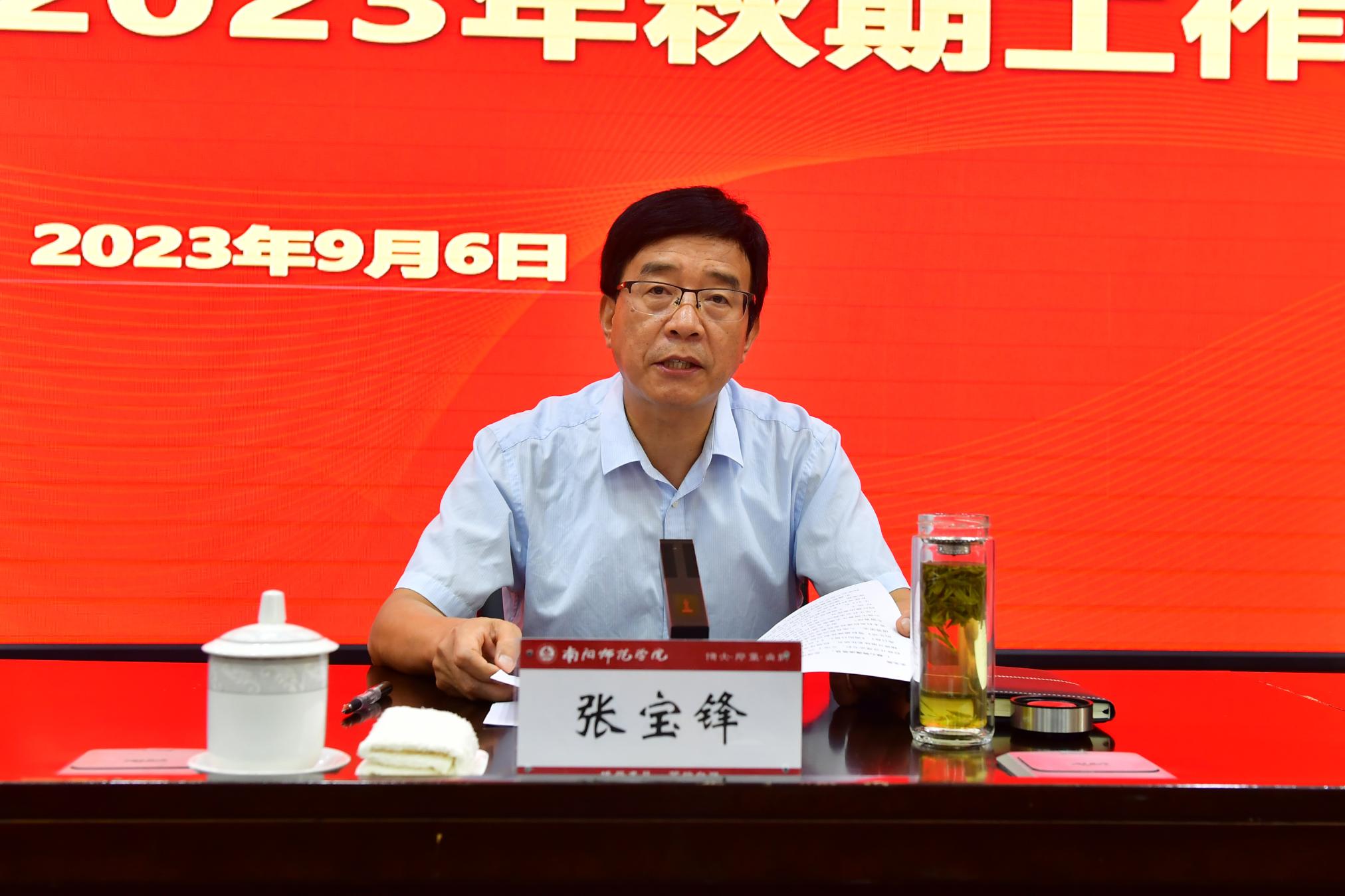 校长张宝锋作秋期工作报告,他表示,半年来,学校深入开展学习贯彻习近平新时代中国特色社会主义思想主题教育,锚定“更名大学和博士学位授权”两大目标,持续深化内涵建设,综合实力和核心竞争力不断增强。新学期重点抓好十项工作:一是一张蓝图绘到底,实干担当谱新篇;二是突出学院办学主体,扎实推进目标管理改革;三是广泛动员,凝聚共识,做好硕士学位授予增列工作;四是坚持人才培养中心地位,做好本科教学审核评估的准备工作;五是坚持人才强校,着力打造高水平师资队伍;六是加强学科建设,扩大高层次科研成果;七是抓好文明校园创建,提升学校精神文明建设水平;八是拓展国际化办学格局,不断提升对外交流合作水平;九是强力推进各项工程建设,不断提升各项硬件指标;十是修订教职工绩效考核办法,充分激发教职工积极性。