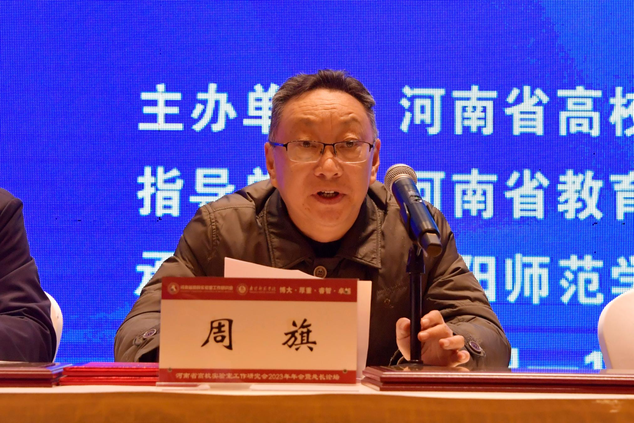 本网讯(郑清岭/文 胡新悦 张琳瑶/图)12月8—10日,河南省高校实验室工作研究会2023年年会暨处长论坛在南阳召开,来自河南省教育厅高教处、郑州大学等102所高校主管实验室的职能部门、河南省科研仪器共享服务中心等单位相关负责人150余人参加会议。永利官网副校长周旗出席会议,开幕式由河南省高校实验室研究会常务副理事长兼秘书长马国杰主持。