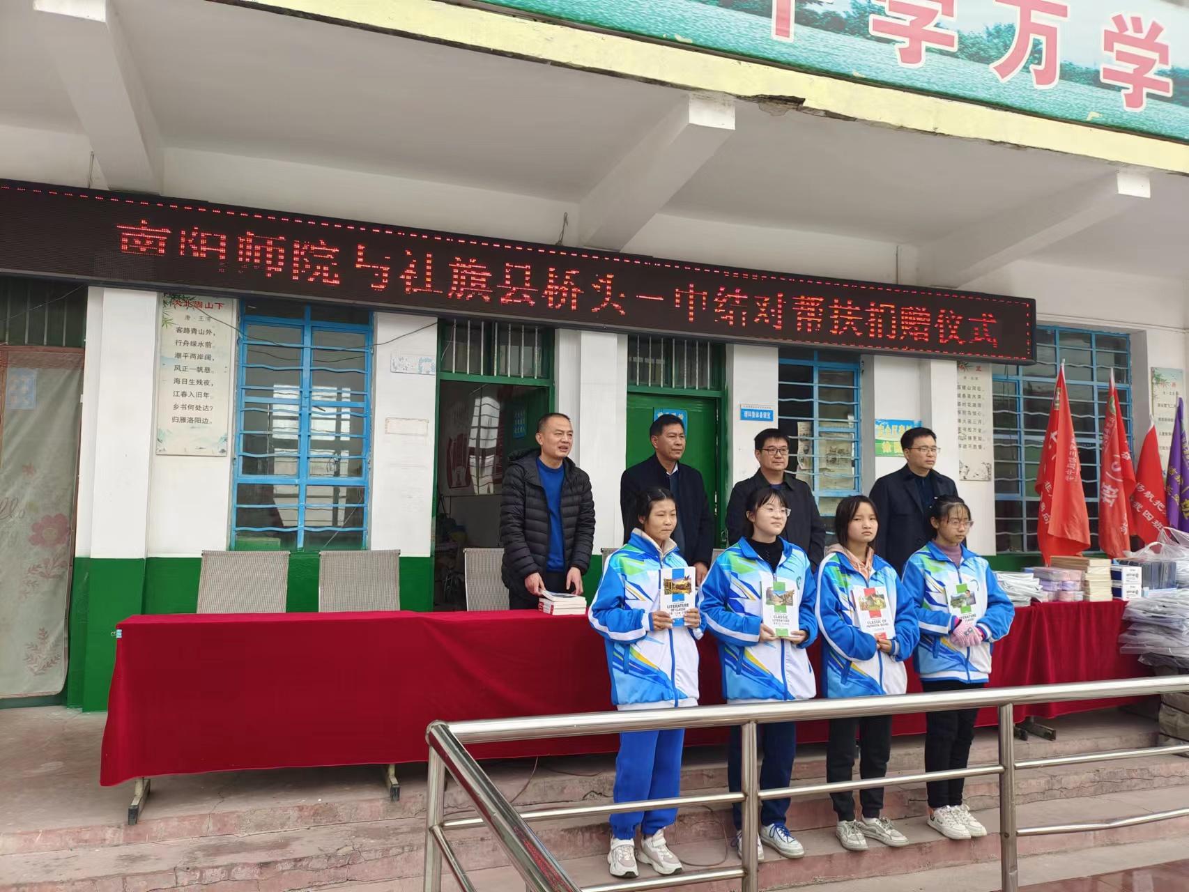 11月下旬,学院赴社旗县桥头镇第三初级中学开展校地结对帮扶活动,并捐赠书包、书籍、试卷夹、中性笔、文具袋、笔记本等价值5000余元的物资;赴社旗县美创空间开展校地结对帮扶活动,捐赠经济管理类、成长励志类、名人传记类等各类书籍近百册。