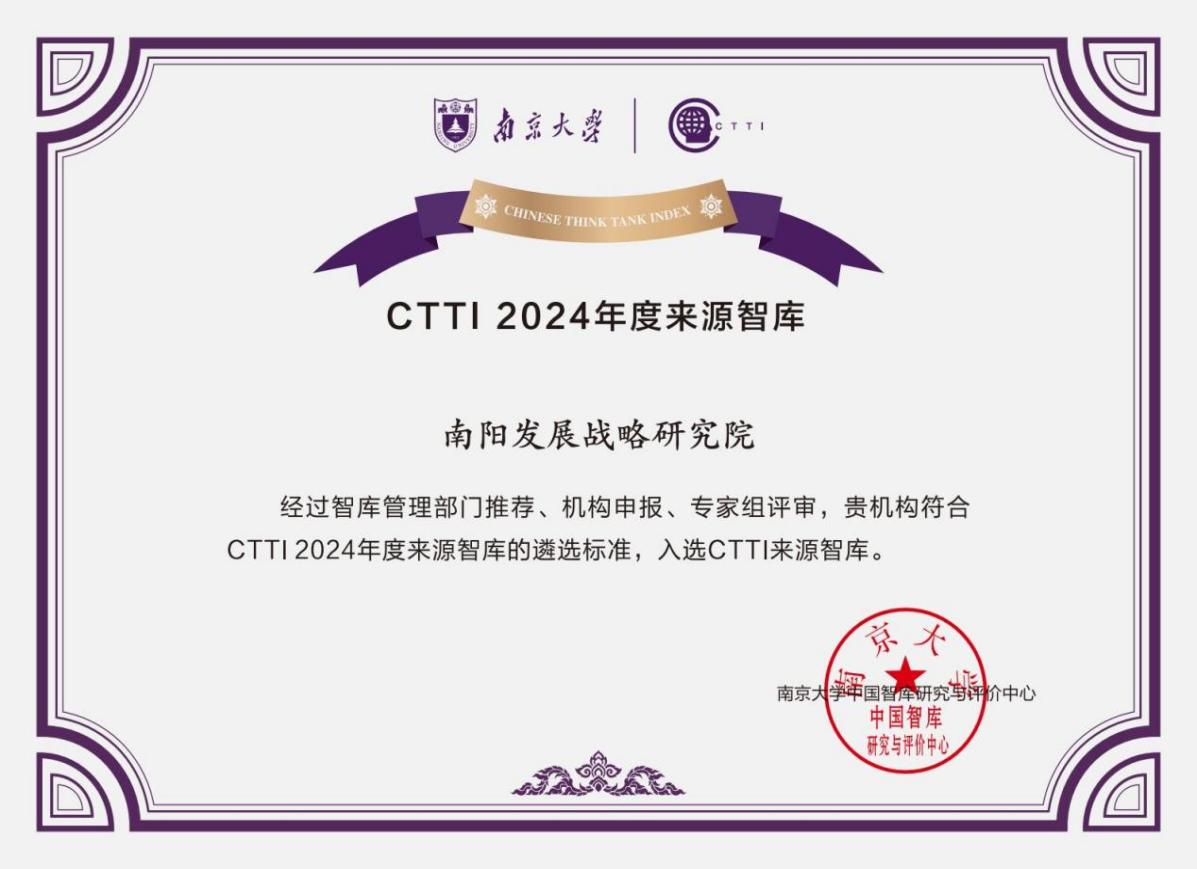 学校高度重视智库建设工作,紧紧围绕国家战略需求、省委“十大战略”、南阳建设省域副中心城市等重大现实问题开展研究,新型智库建设成效明显,服务地方经济社会发展能力不断提升。2024年,永利官网南阳发展战略研究院成功入选南京大学中国智库研究与评价中心发布的中国智库索引(CTTI)2024年来源智库,申报案例获智库建设最佳案例奖、优秀研究成果一等奖。中国智库索引(CTTI)是国内目前反映智库影响力和知名度最权威的检索工具,此次入选标志着永利官网智库建设工作得到了国内权威智库评价机构的认可。近年来,南阳发展战略研究院先后获“河南省生态经济发展战略软科学研究基地”“河南省高校新型品牌智库”“河南科技智库省域副中心城市研究基地建设单位”“南阳市优秀智库”等称号,智库品牌影响力和知名度不断提升。